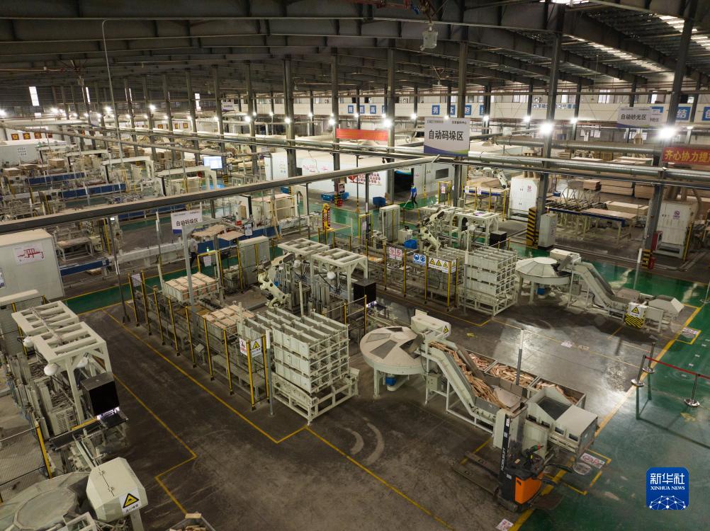 8月14日,在江西省贛州市南康家具智能備料中心的自動碼垛區里,機器在加工木料。