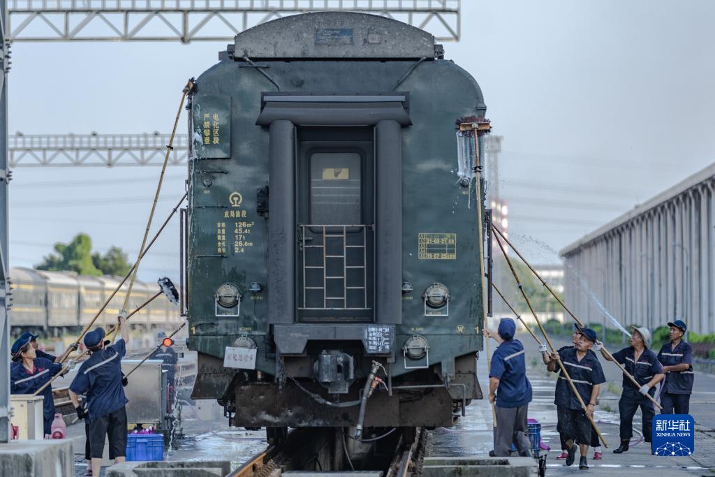 為保證鐵路暑運工作順利進行,重慶客運段、重慶鐵路公安處、重慶車輛段、重慶機務段、重慶車站等部門人員堅守崗位,對入庫車輛進行全列巡視、設備檢修、用品更換、車輛清潔等工作,確保列車次日發車時,旅客能夠享受到安全舒適的乘車環境。