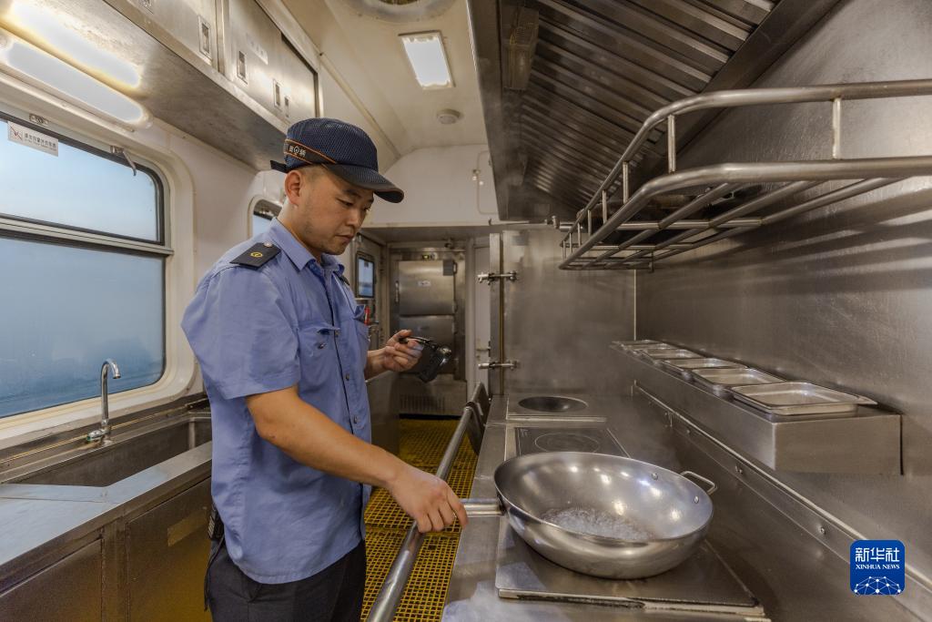 8月15日,重慶車輛段工作人員在重慶西客車整備所對列車餐車電器設(shè)備進(jìn)行檢測調(diào)試。