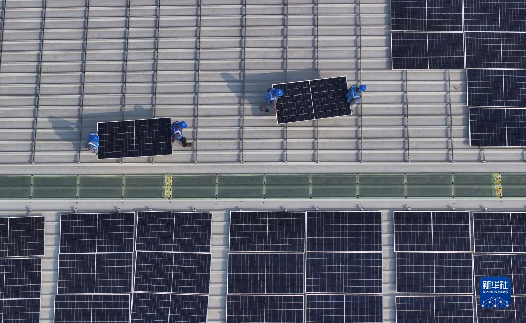 連日來,在河北省唐山市海港經濟開發區各企業的廠房屋頂,工人搶抓工期,安裝光伏發電板,現場一片忙碌景象。