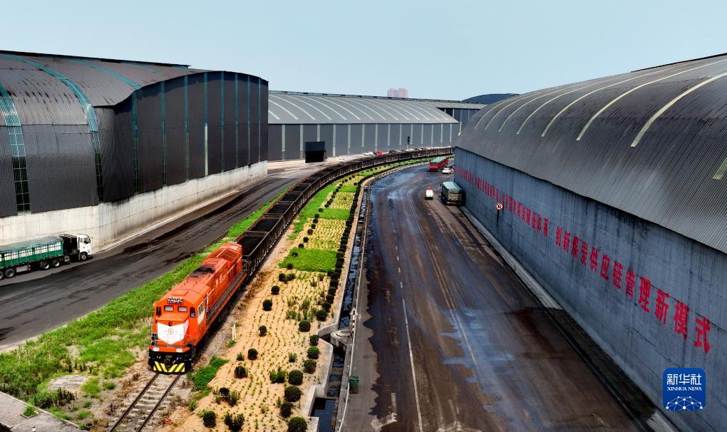 8月16日,在中聯(lián)鐵運(yùn)(井陘)儲(chǔ)備基地,發(fā)往保定電廠的煤炭列車駛出儲(chǔ)備基地。