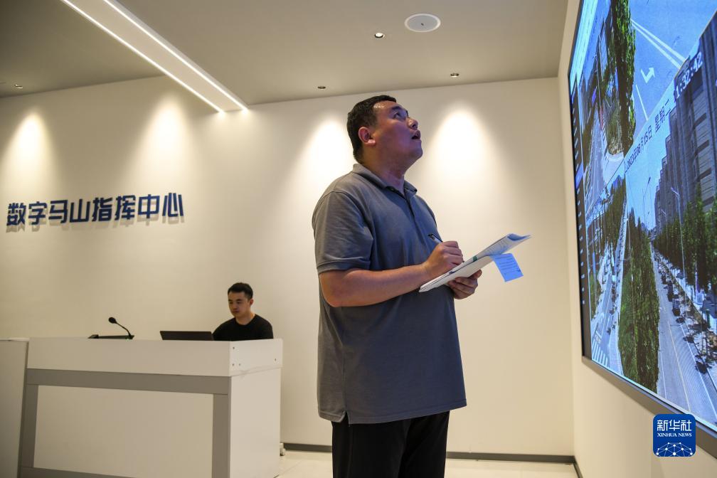 8月15日,馬山鎮(zhèn)工作人員通過(guò)數(shù)字技術(shù)查看社區(qū)情況。