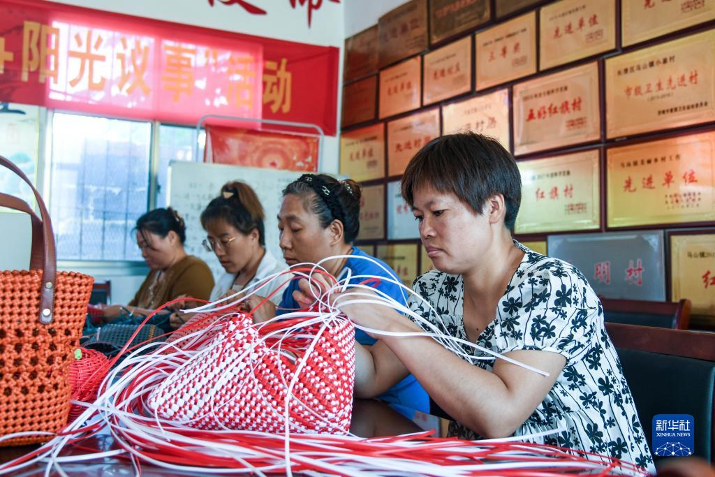 8月15日,馬山鎮(zhèn)小崔村居民在合作社內(nèi)加工藤柳編產(chǎn)品。