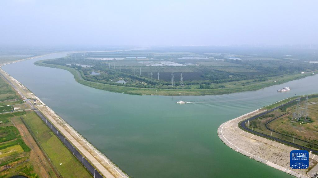 8月16日,船只在引江濟(jì)淮工程航道江淮溝通段航行(無(wú)人機(jī)照片)。