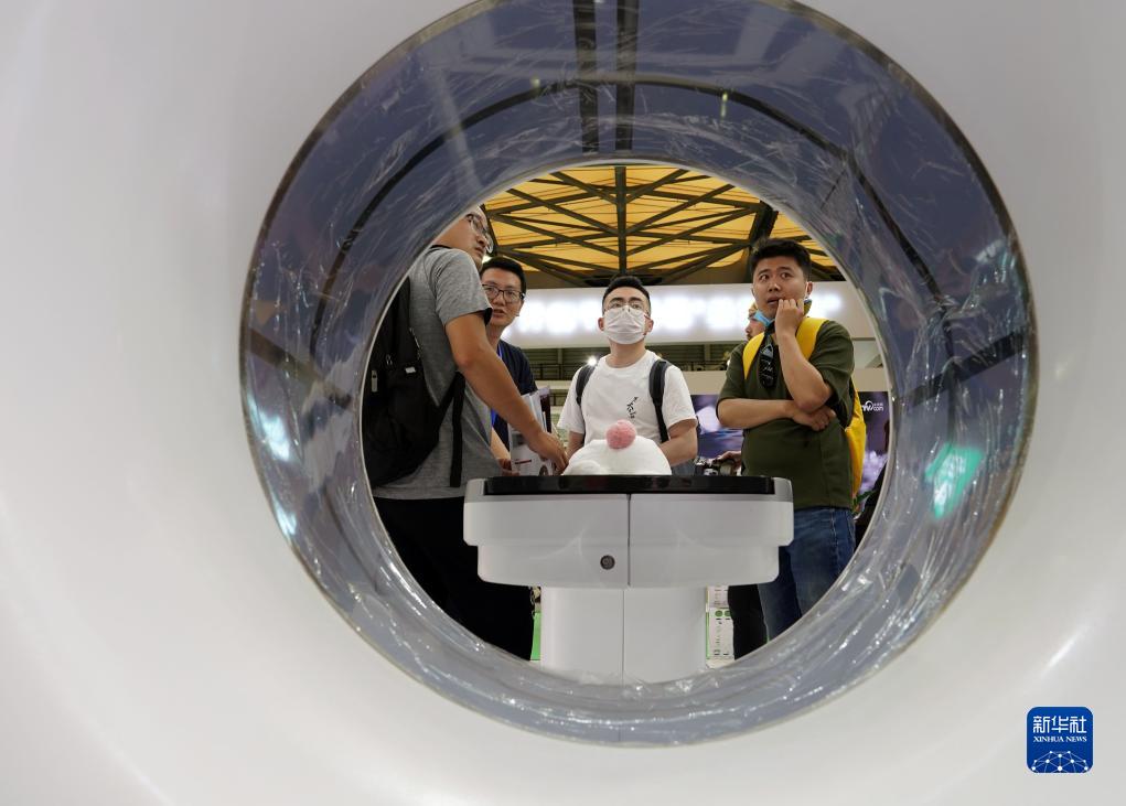 8月16日,觀眾在第25屆亞洲寵物展覽會寵物醫療館了解動物專用CT機。