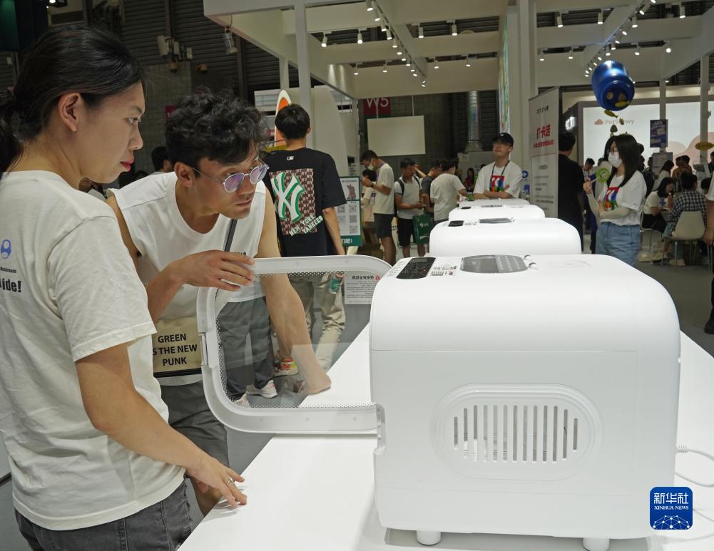 8月16日,觀眾在第25屆亞洲寵物展覽會上參觀寵物智能烘干箱。