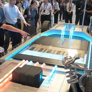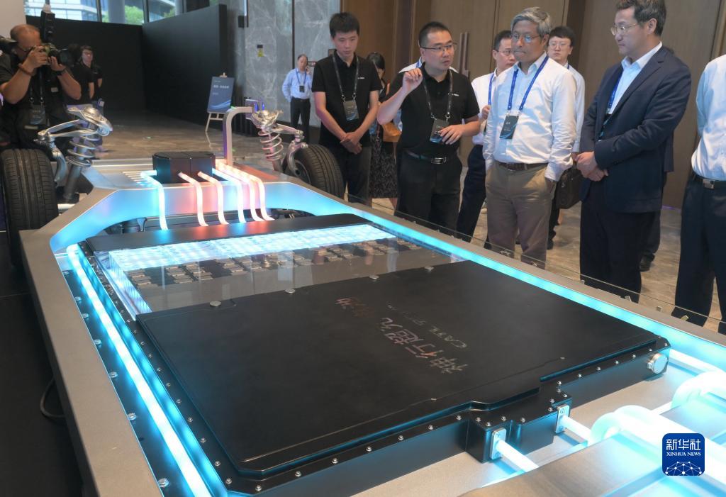 8月16日,工作人員向參觀者介紹寧德時代發(fā)布的神行超充電池。