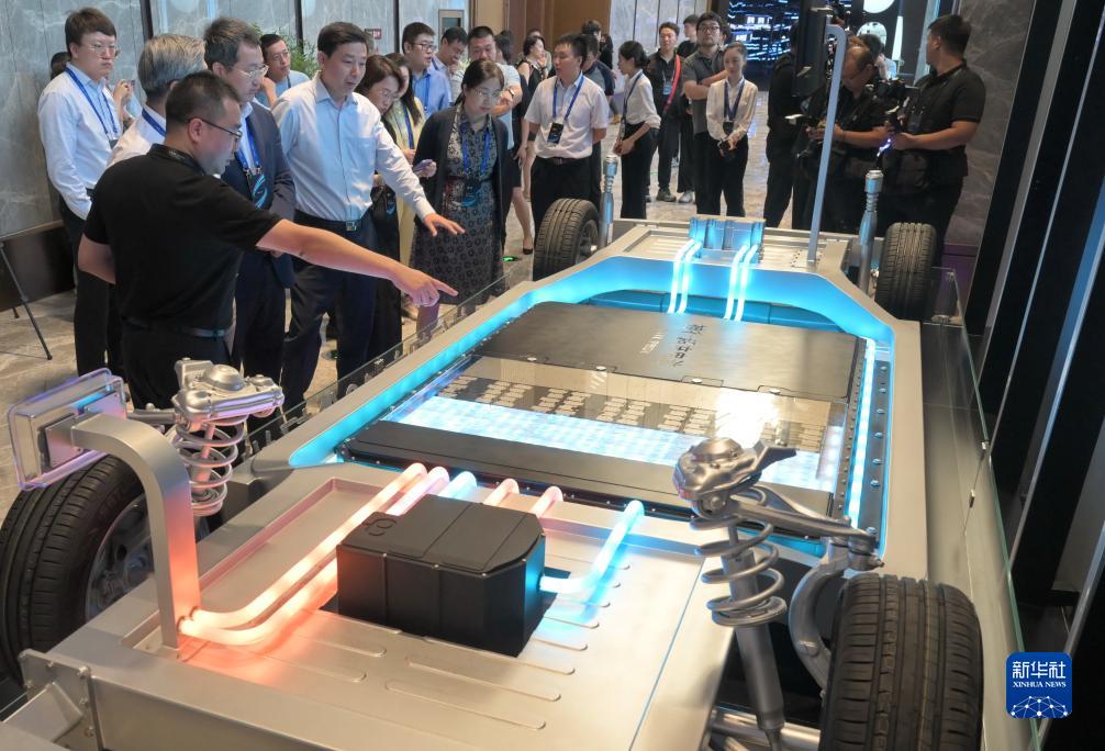 8月16日,參觀者在觀看寧德時(shí)代發(fā)布的神行超充電池。