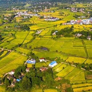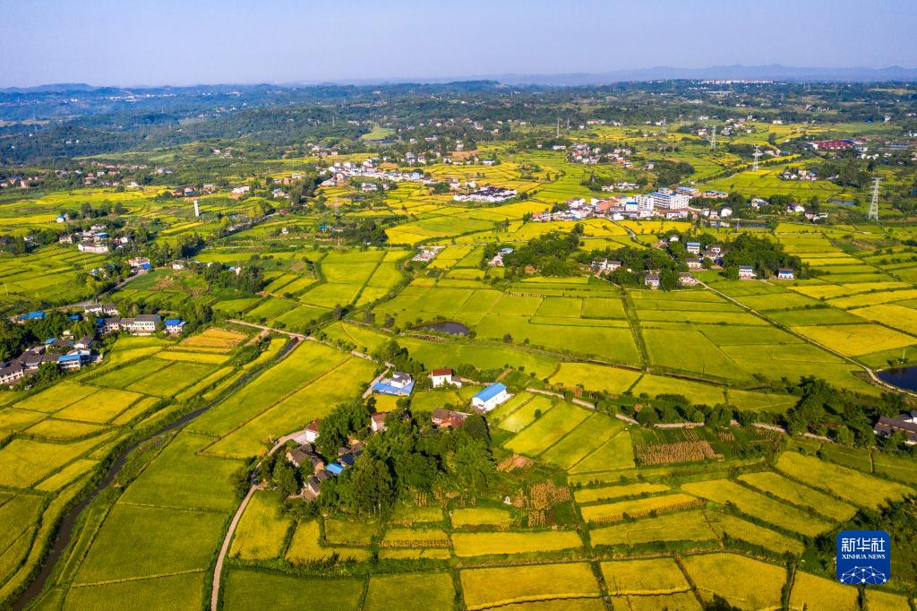 四川省廣安市廣安區(qū)大安鎮(zhèn)南橋村水稻泛黃成熟(無人機照片,8月15日攝)。