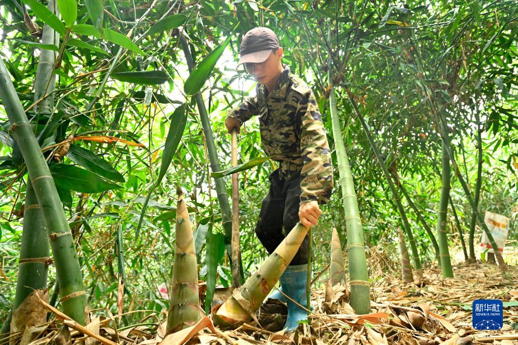 8月16日,在廣西柳州市柳城縣沙埔鎮(zhèn)古仁村,農(nóng)民在竹林里挖筍。