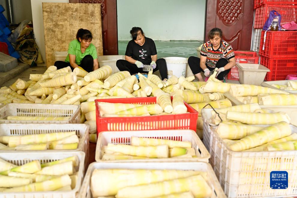 目前正值廣西柳州市柳城縣竹筍收獲的季節,柳城縣沙埔鎮種植的近萬畝竹林喜獲豐收,當地農民忙著挖筍、剝筍、腌制酸筍,隨處可見忙碌的場景。近年來,柳城縣積極打造柳州螺螄粉原材料生產基地,大力發展竹筍種植和深加工產業,帶動農戶增收致富,助力鄉村振興。