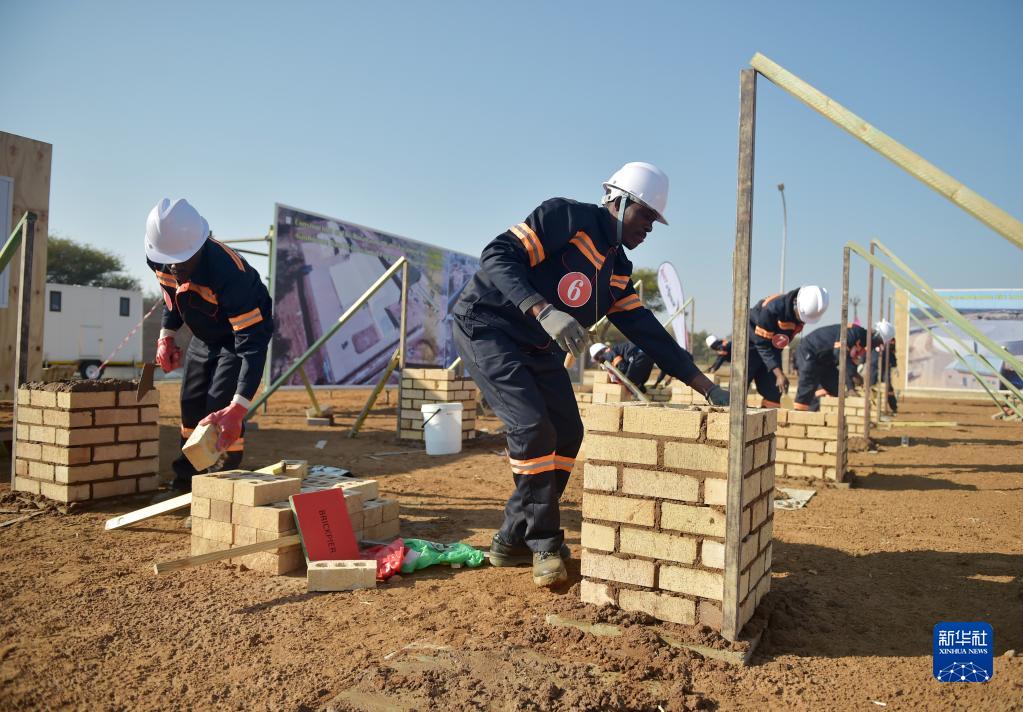 8月15日,在博茨瓦納莫舒帕,當地員工在正太集團舉辦的員工技能大賽上進行砌墻比賽。