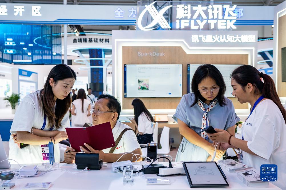 8月16日,觀眾在第七屆中國—南亞博覽會上的科大訊飛展位了解數碼產品。 新華社記者 胡超 攝