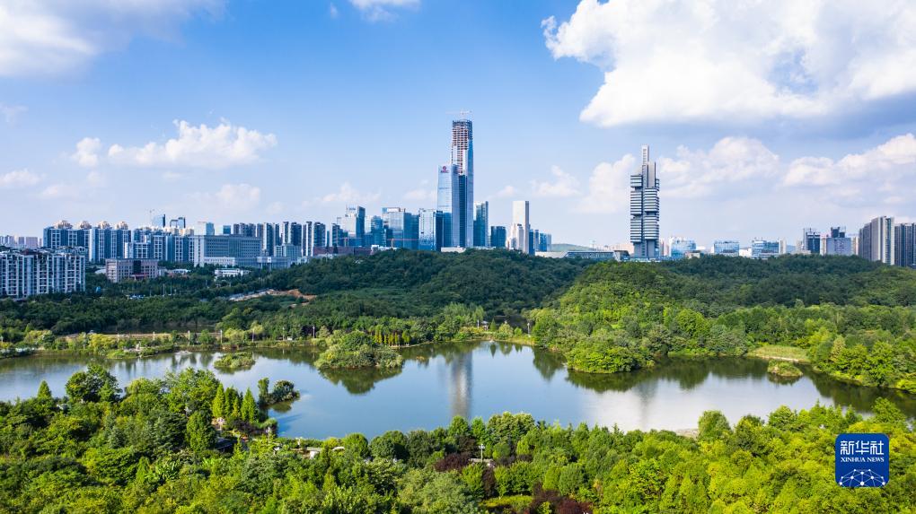 貴陽市觀山湖公園風(fēng)光(2020年7月29日攝,無人機(jī)照片)。