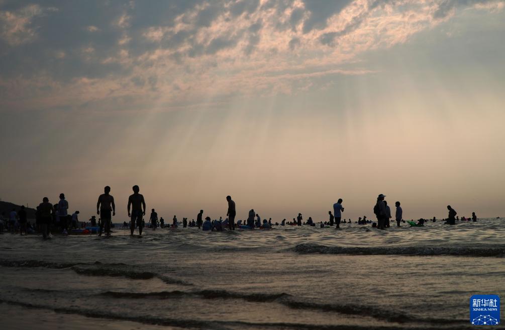 8月16日,游客在山東省萊州市三山島的海濱風景區游玩。