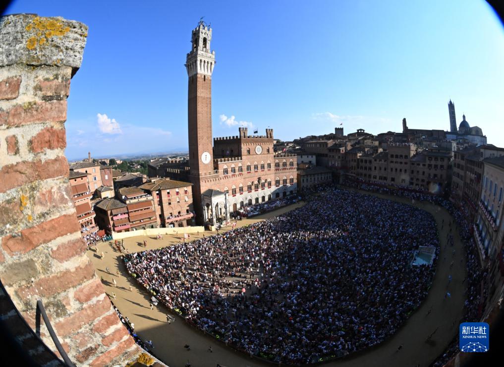 當日,錫耶納賽馬節在意大利托斯卡納大區古城錫耶納市中心的田野廣場舉行,吸引了眾多觀眾前來觀看。錫耶納賽馬節是世界聞名的意大利傳統民間活動,始于1656年,每年7月2日和8月16日舉行兩次。
