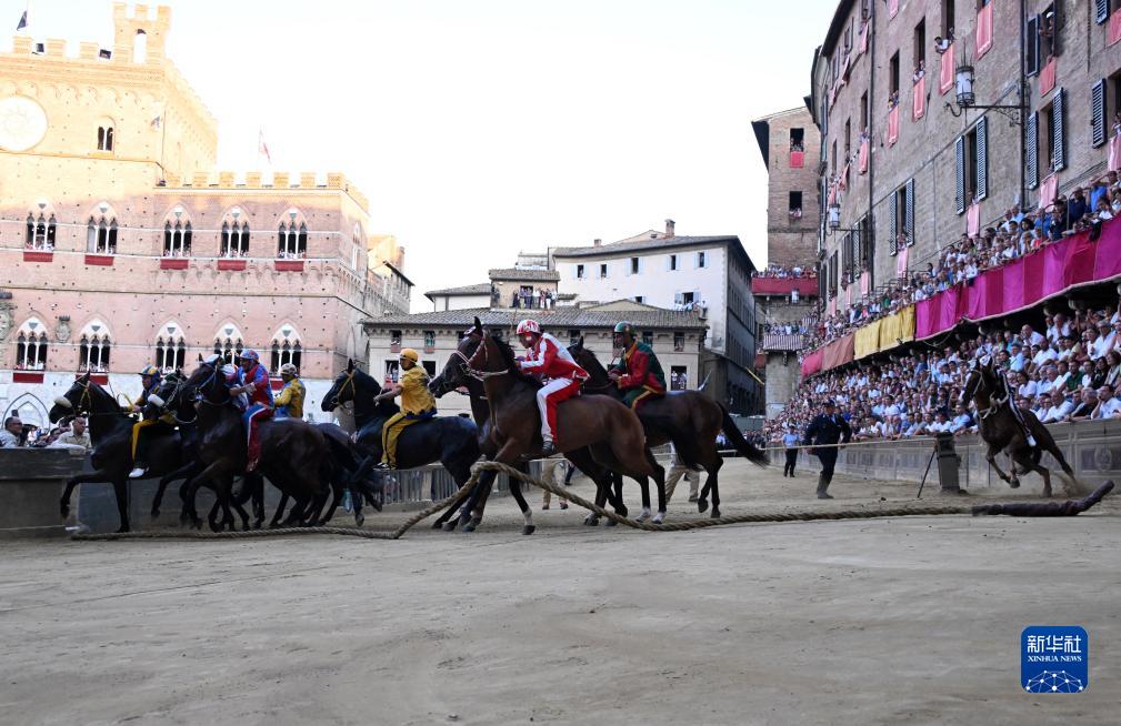 當日,錫耶納賽馬節在意大利托斯卡納大區古城錫耶納市中心的田野廣場舉行,吸引了眾多觀眾前來觀看。錫耶納賽馬節是世界聞名的意大利傳統民間活動,始于1656年,每年7月2日和8月16日舉行兩次。
