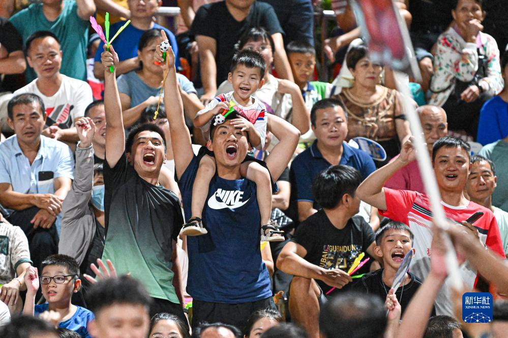 “村排”決賽現(xiàn)場(chǎng),觀眾在場(chǎng)邊吶喊助威(8月13日攝)。
