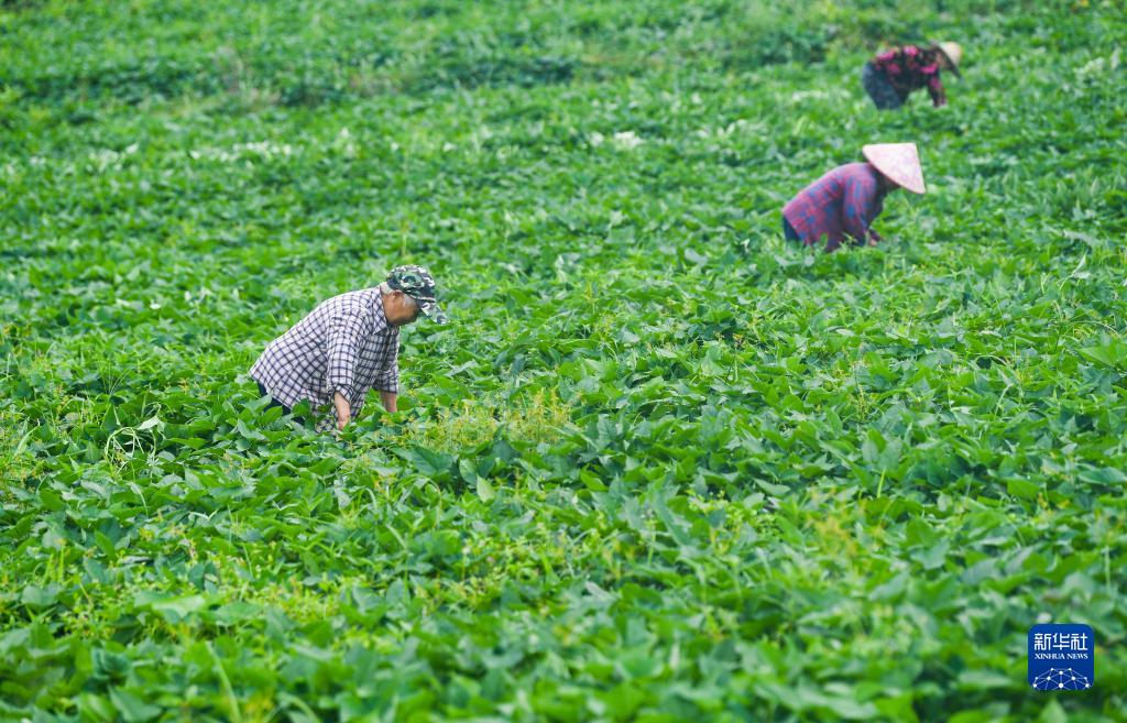 8月16日,村民在重慶市石柱土家族自治縣王家鄉(xiāng)光華村紅薯地里勞作。