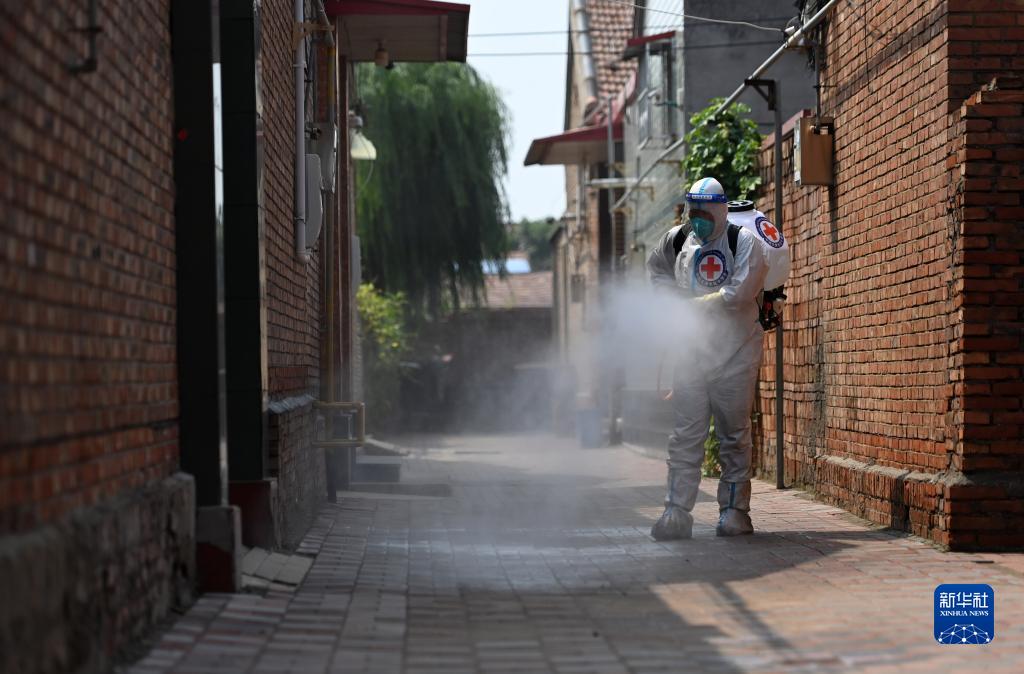 8月17日,工作人員在天津市靜海區(qū)臺(tái)頭鎮(zhèn)進(jìn)行消殺作業(yè)。
