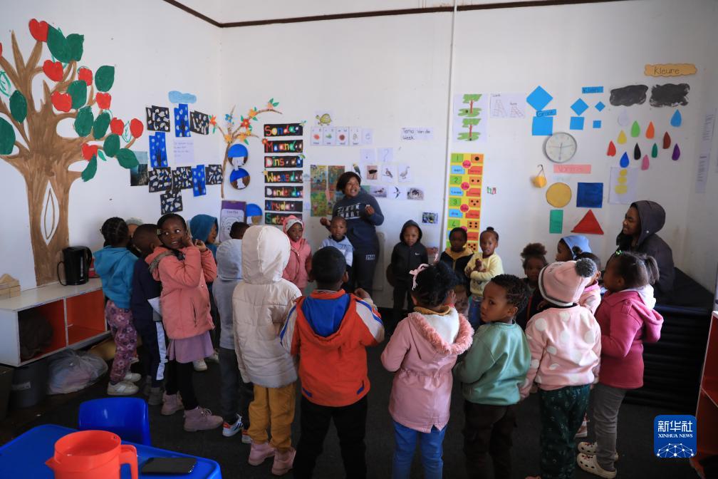 8月11日,老師在南非德阿鎮的一家兒童早教中心給孩子們上課。