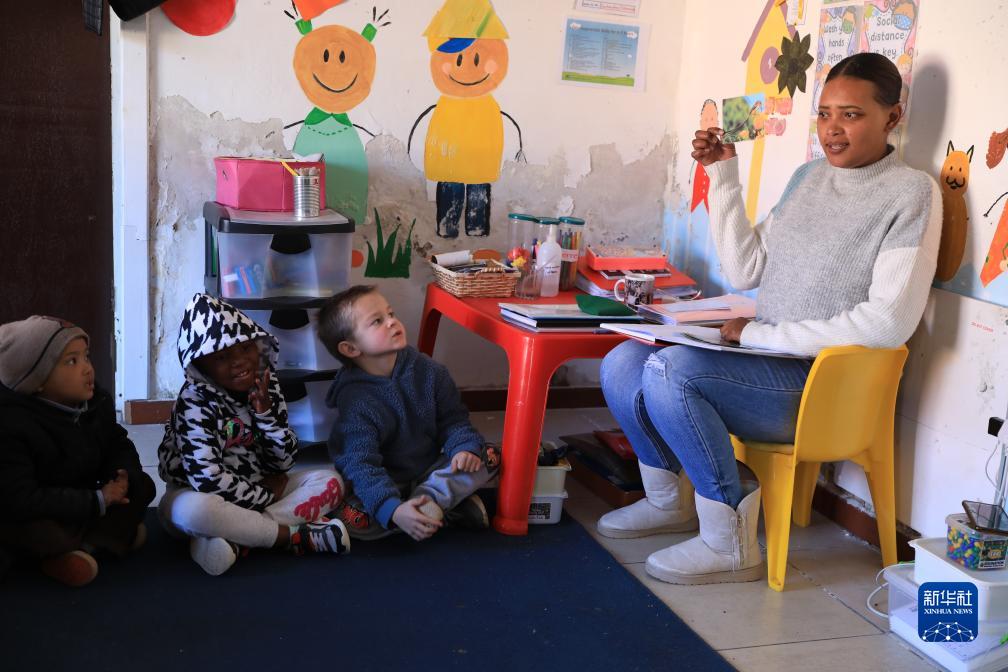 8月11日,老師在南非德阿鎮(zhèn)的一家兒童早教中心給孩子們上課。