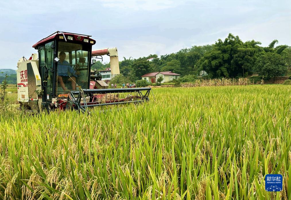 連日來,湖南、湖北、四川等地種植的水稻進入成熟收獲季,農民操作農機在田野里忙碌,感受豐收的喜悅。