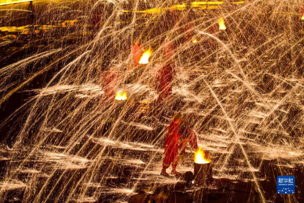 連日來,內蒙古伊金霍洛旗鄂爾多斯文化產業園在景區舉辦“華夏鐵魂”主題鐵花秀活動,民間藝人將燒紅的鐵水在半空中散開,迸濺形成萬千火花,構成壯麗的圖景,成為當地夜經濟的亮點,吸引眾多游人前來觀賞。活動將持續到8月27日。