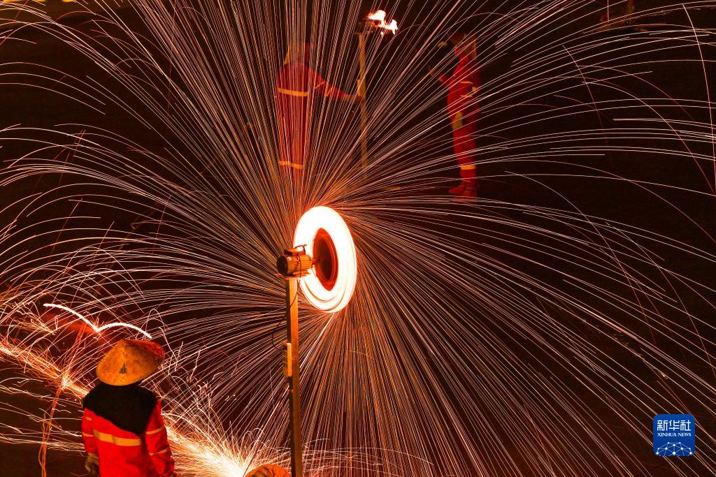連日來(lái),內(nèi)蒙古伊金霍洛旗鄂爾多斯文化產(chǎn)業(yè)園在景區(qū)舉辦“華夏鐵魂”主題鐵花秀活動(dòng),民間藝人將燒紅的鐵水在半空中散開(kāi),迸濺形成萬(wàn)千火花,構(gòu)成壯麗的圖景,成為當(dāng)?shù)匾菇?jīng)濟(jì)的亮點(diǎn),吸引眾多游人前來(lái)觀賞。活動(dòng)將持續(xù)到8月27日。