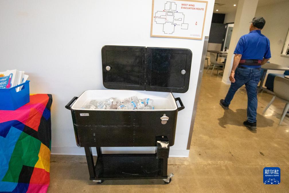 8月17日,工作人員在美國得克薩斯州達拉斯市的一處避暑中心為居民提供免費的水。