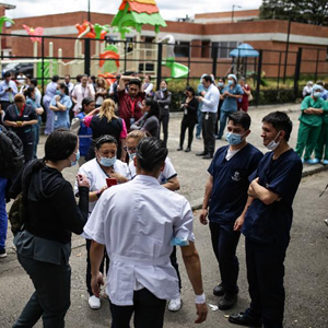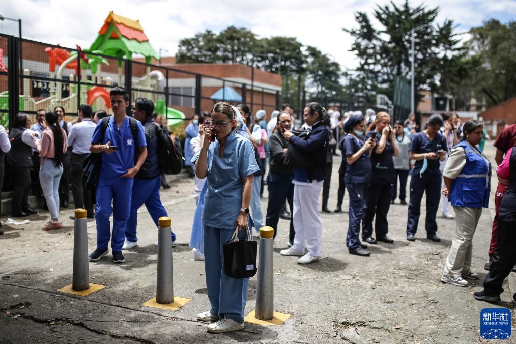 8月17日,在哥倫比亞首都波哥大,人們?cè)诘卣鸢l(fā)生后的街頭避難。