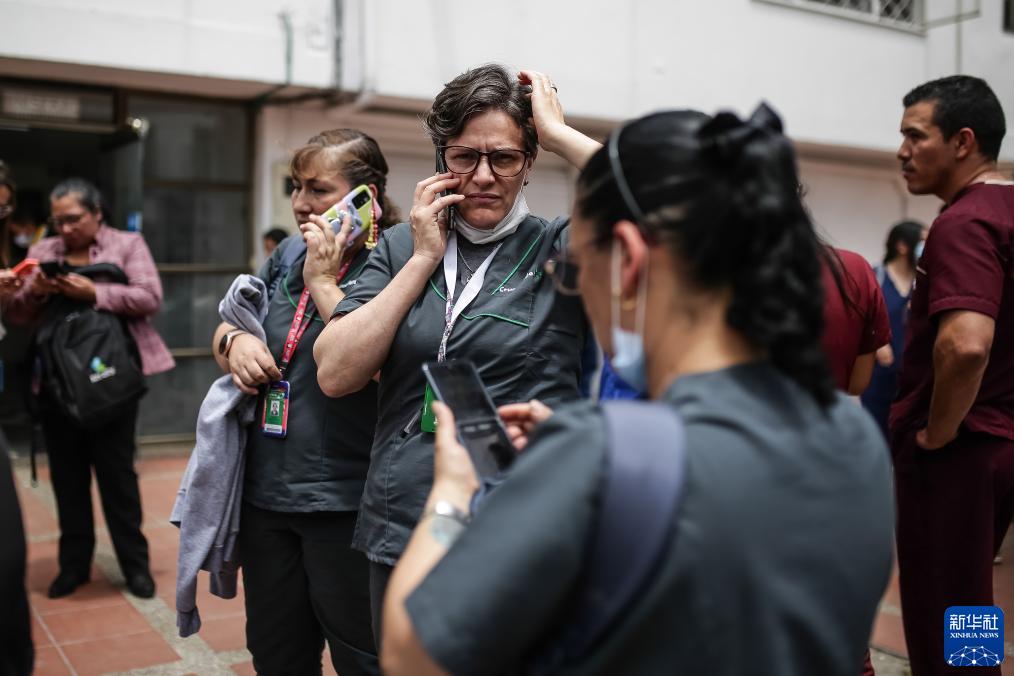 8月17日,在哥倫比亞首都波哥大,人們?cè)诘卣鸢l(fā)生后的街頭避難。