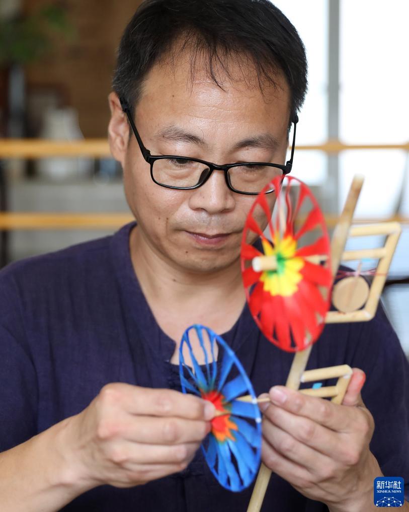 傳統(tǒng)吉祥輪彩紙風(fēng)車(chē)代表了喜慶和吉祥,作為遼寧營(yíng)口崔氏傳統(tǒng)吉祥輪彩紙風(fēng)車(chē)制作技藝第四代傳承人,今年43歲的崔凱將原來(lái)傳統(tǒng)風(fēng)車(chē)制作流程和制作工藝進(jìn)行創(chuàng)新和改良。