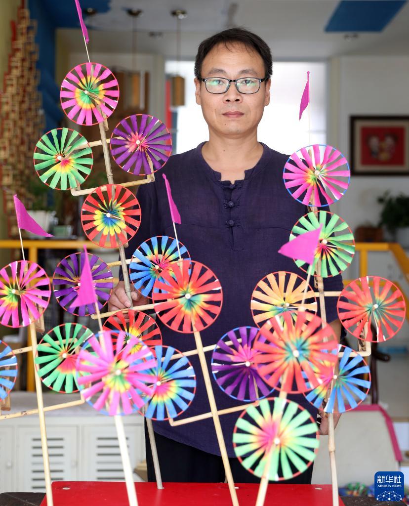 傳統吉祥輪彩紙風車代表了喜慶和吉祥,作為遼寧營口崔氏傳統吉祥輪彩紙風車制作技藝第四代傳承人,今年43歲的崔凱將原來傳統風車制作流程和制作工藝進行創新和改良。