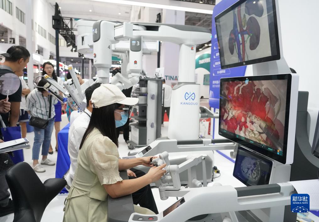 這是在2023世界機器人大會現場拍攝的一款手術機器人(8月17日攝)。
