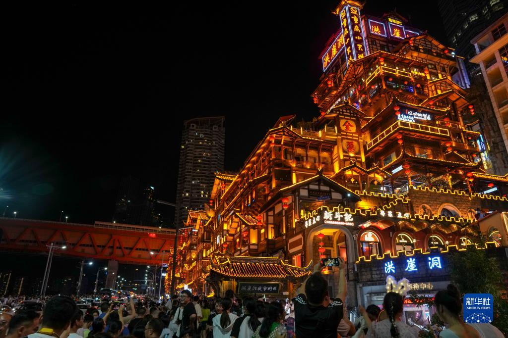這是重慶洪崖洞夜市街區外景(8月3日攝)。