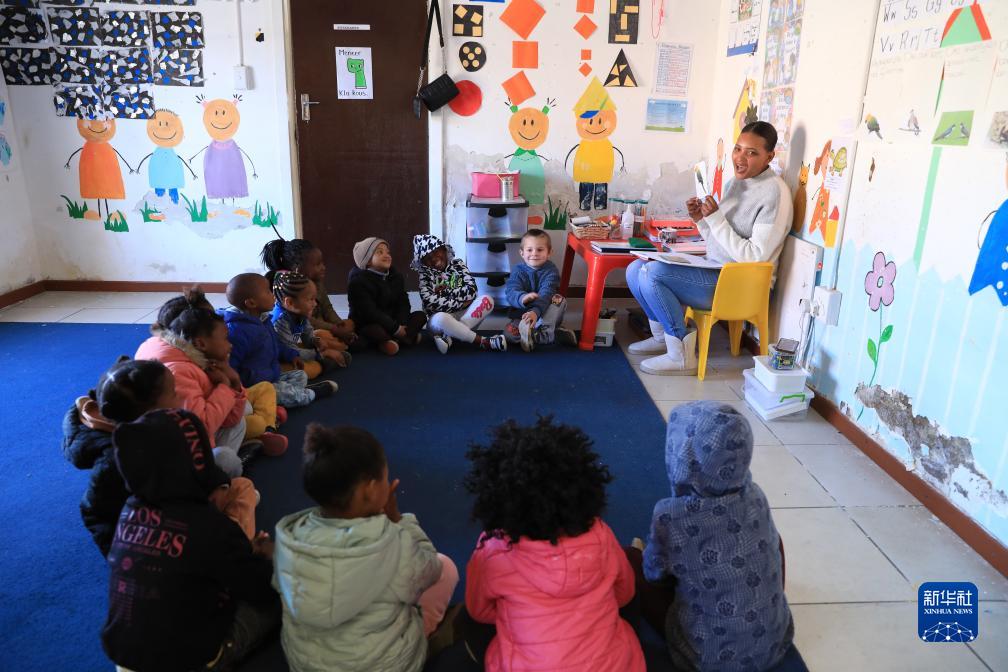 8月11日,在南非北開(kāi)普省德阿鎮(zhèn)一家龍?jiān)茨戏枪具\(yùn)營(yíng)的兒童早教中心,老師在給孩子們上課。