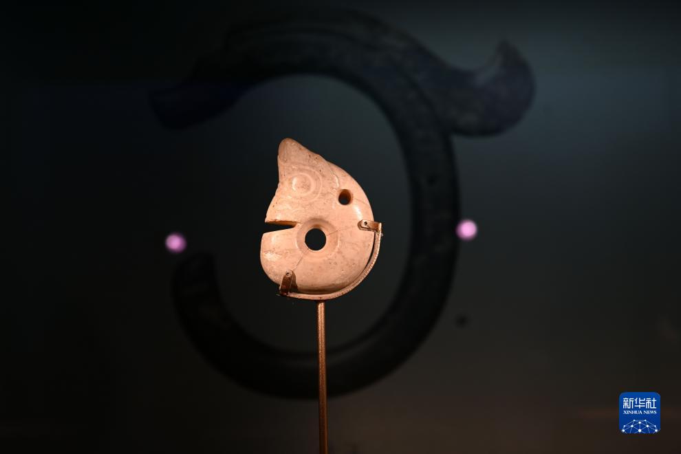 8月18日在中國國家博物館“中國古代玉器”專題展覽上拍攝的紅山文化玦形龍。
