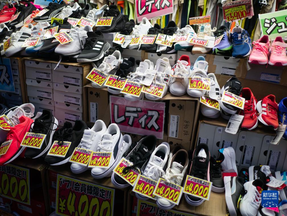 這是8月15日在日本東京上野一商業(yè)街拍攝的鞋店。