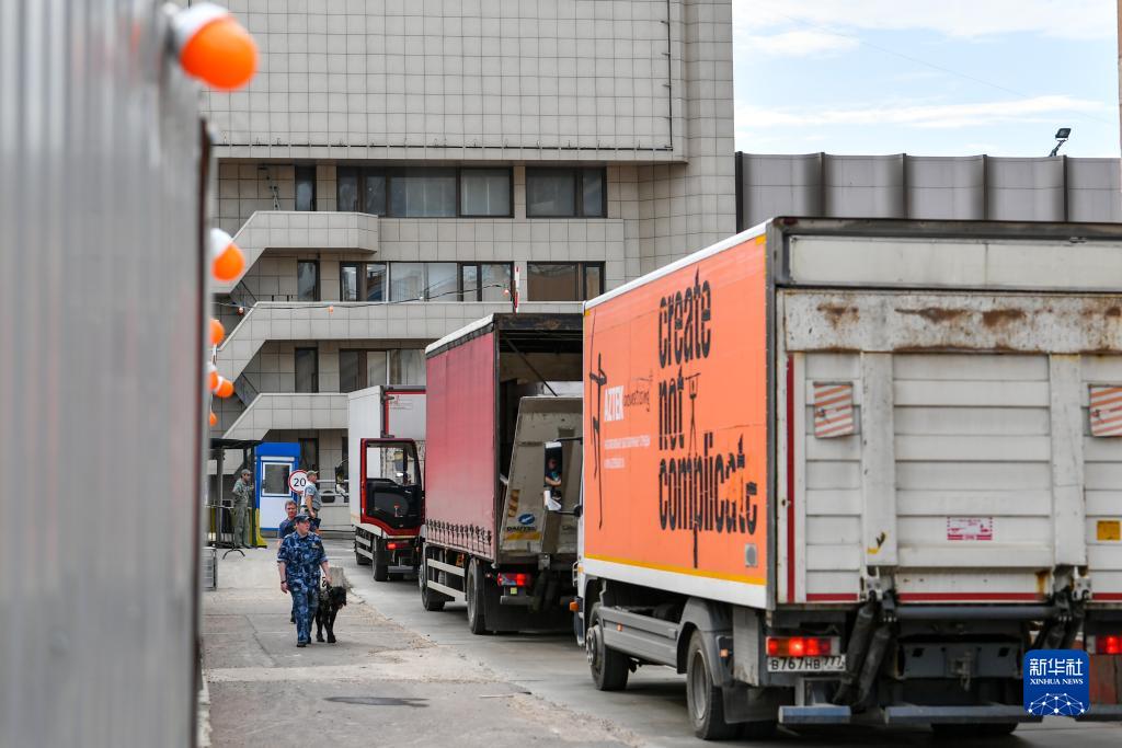 8月18日,工作人員在俄羅斯莫斯科受損建筑附近檢查車輛。