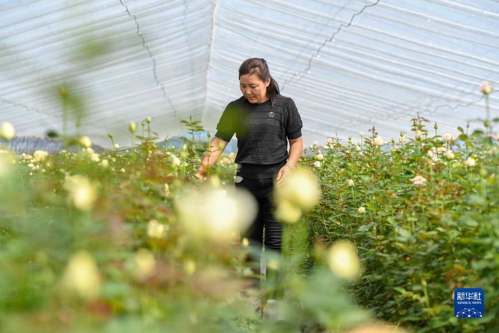 臨近七夕,位于吉林省德惠市朱城子鎮沿河村的程雪家庭農場玫瑰大棚內一派繁忙景象。負責人楊雪帶領村民關注花朵長勢,計算著花期,適時進行采摘。
