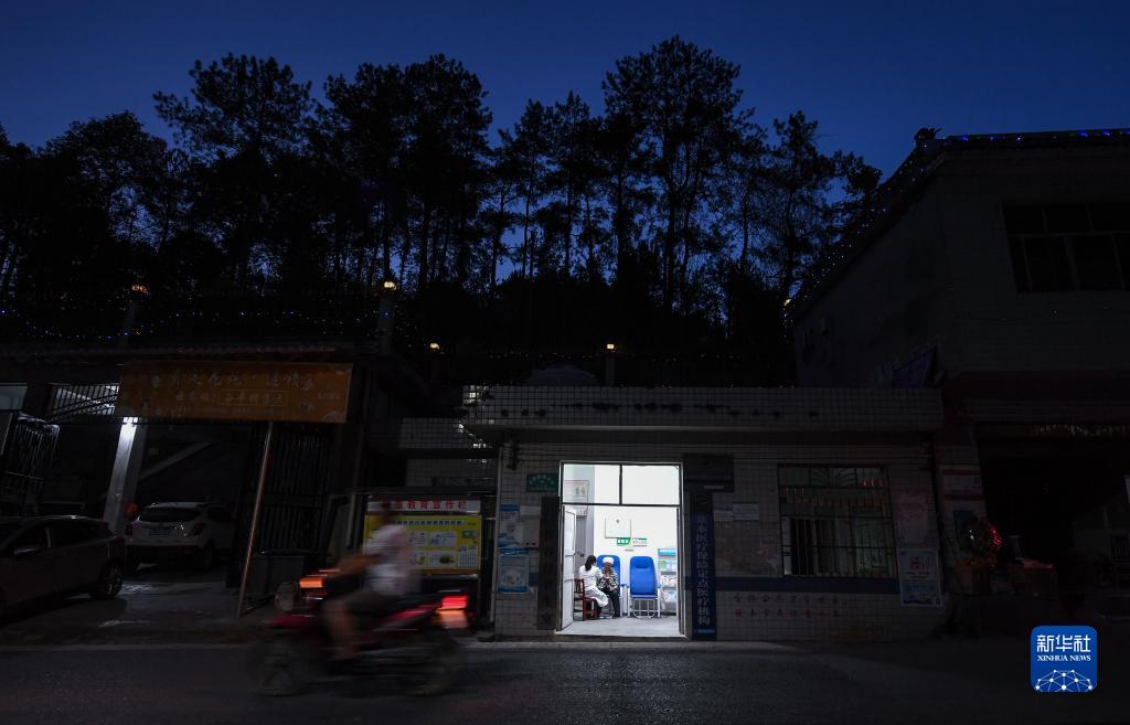 8月16日晚,羅海香在村衛生室里給村民做檢查。