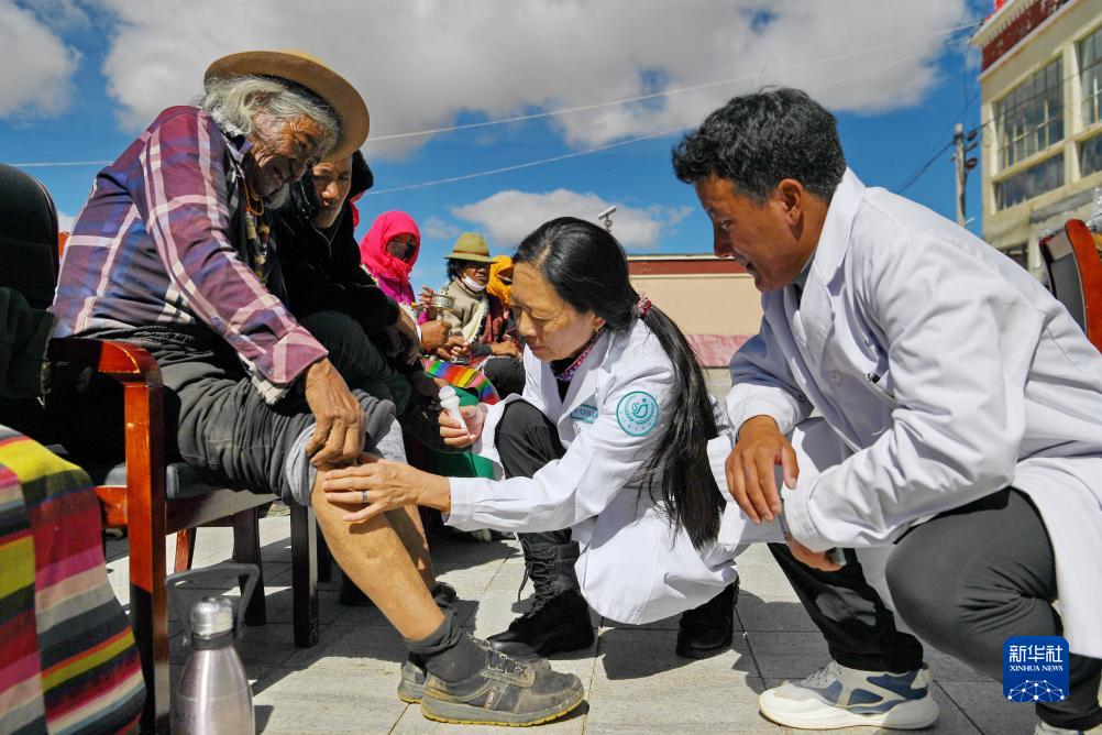 當日,西藏阜康腫瘤醫院的康復理療師來到海拔4000余米的阿里地區措勤縣曲洛鄉,聯合當地衛生院的醫生為當地牧民義診。