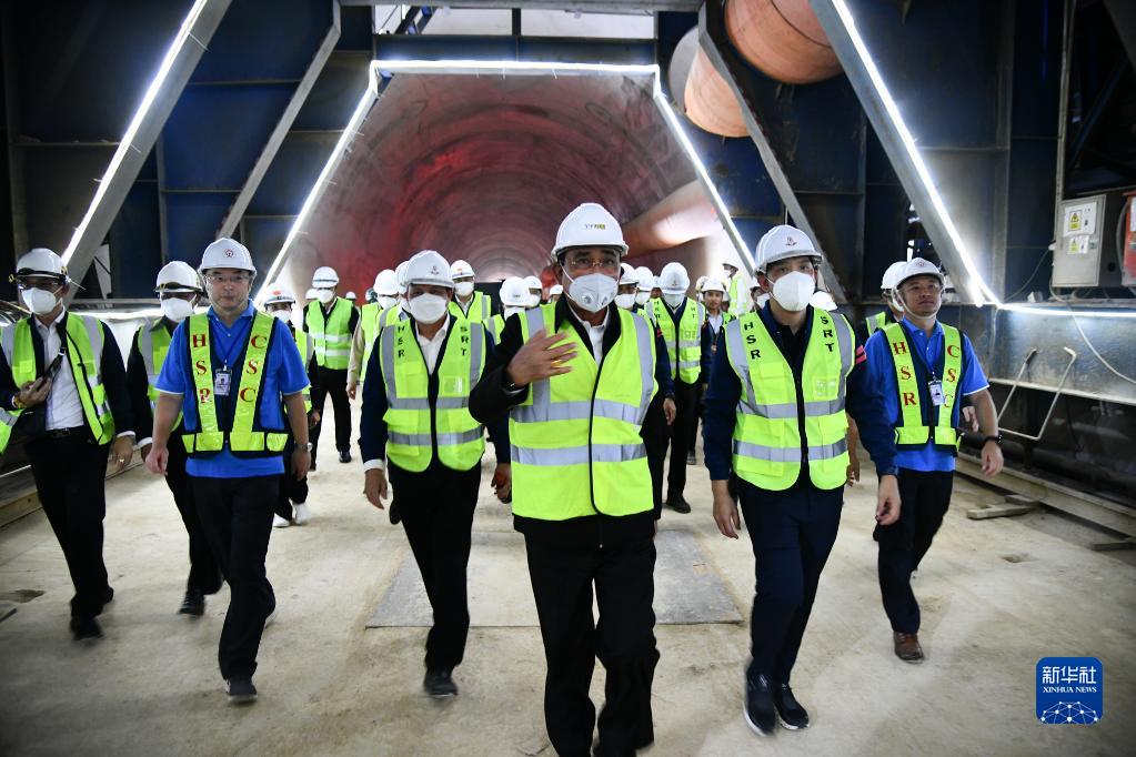 8月17日,泰國總理巴育(前)在沙拉武里府視察中泰鐵路施工段。