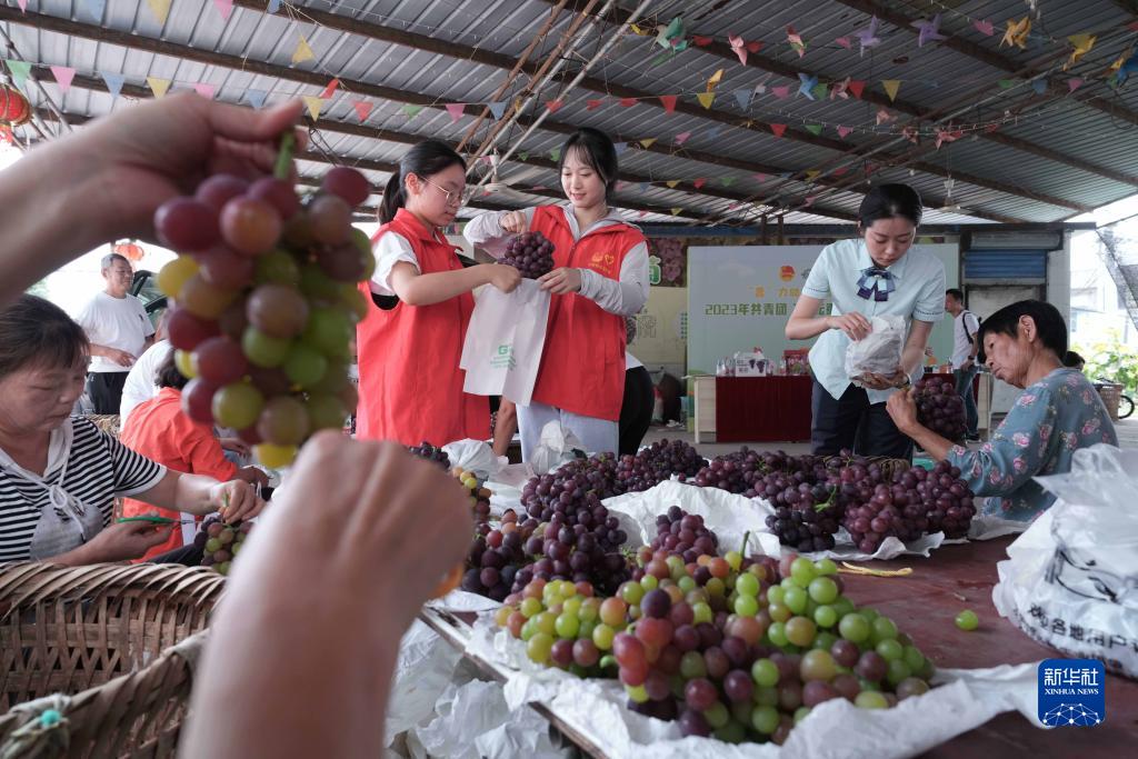 當日,共青團重慶市北碚區委組織參加“返家鄉”“三下鄉”社會實踐活動的大學生走進葡萄園,開展“青耘重慶”直播助農活動,幫助果農拓寬銷售渠道。今年暑期,共青團重慶市委聯合多家單位啟動了“青耘重慶”直播助農活動暨大學生公益助農營銷挑戰賽,組織多個高校的大學生開展為期兩個多月的公益助農銷售活動。連日來,大學生們來到田間地頭,通過直播帶貨、創意視頻、推文宣傳等形式,擴大當地農特產品影響力和知名度。