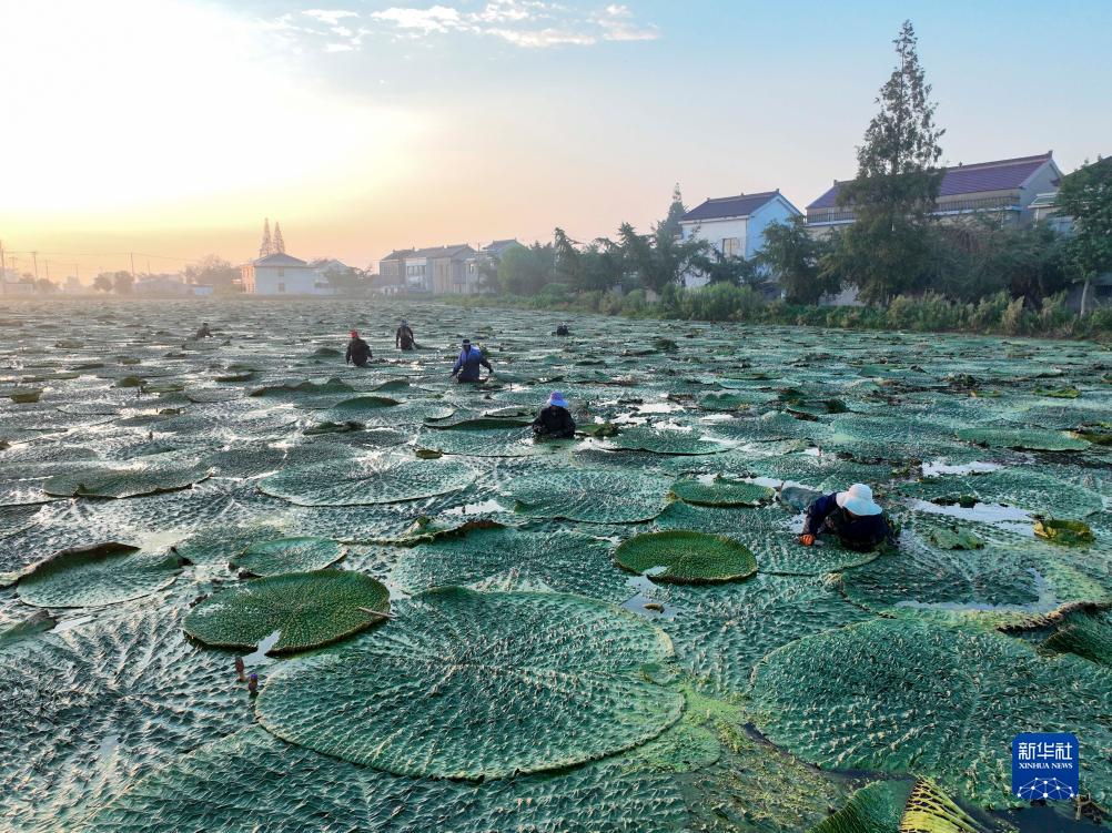 眼下,江蘇省泰州市姜堰區顧高鎮種植的芡實進入成熟期,種植戶組織人力采收,芡種植基地呈現一派繁忙的豐收景象。