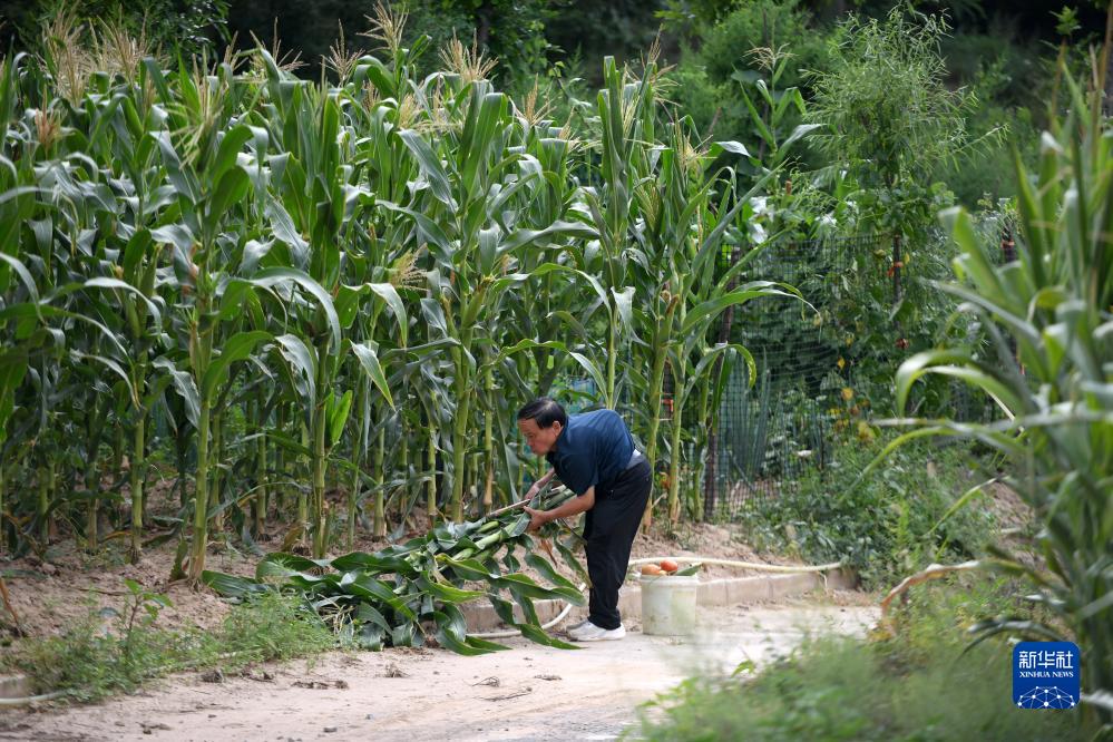 在石樓縣龍交鄉王家溝村,楊興榮在地里干活(8月15日攝)。