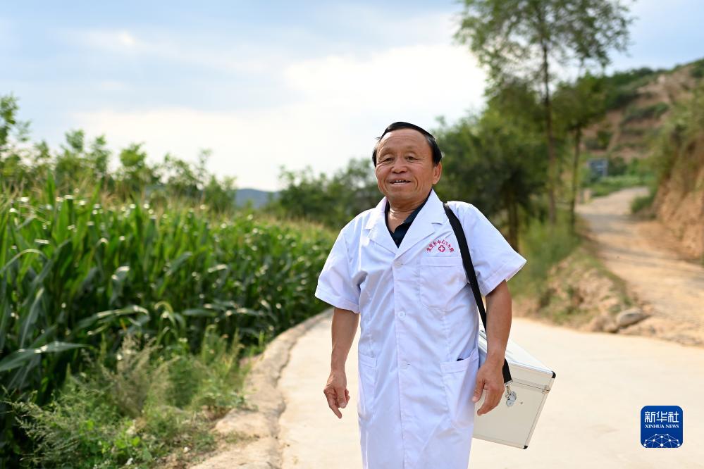 位于呂梁山深處的山西省石樓縣龍交鄉王家溝村,鄉村醫生楊興榮背著藥箱一路前行,進村入戶為村民送醫送藥,守護著這里百姓的健康。這里路遠且艱、交通不便,500多位村民分散居住在溝壑縱橫的大山里,看病難、看病遠曾長期困擾著這里的百姓。1976年,17歲的楊興榮報考了縣衛生局主辦的醫學培訓班,1979年學成后回到村里成為一名村醫。從這一天起,無論刮風下雨,白天黑夜,只要村民們一個電話,楊興榮總是第一時間拿上藥箱出診,隨叫隨到。這些年來,往返奔波在大山之間,楊興榮不記得穿爛了多少雙鞋,摔了多少跤。