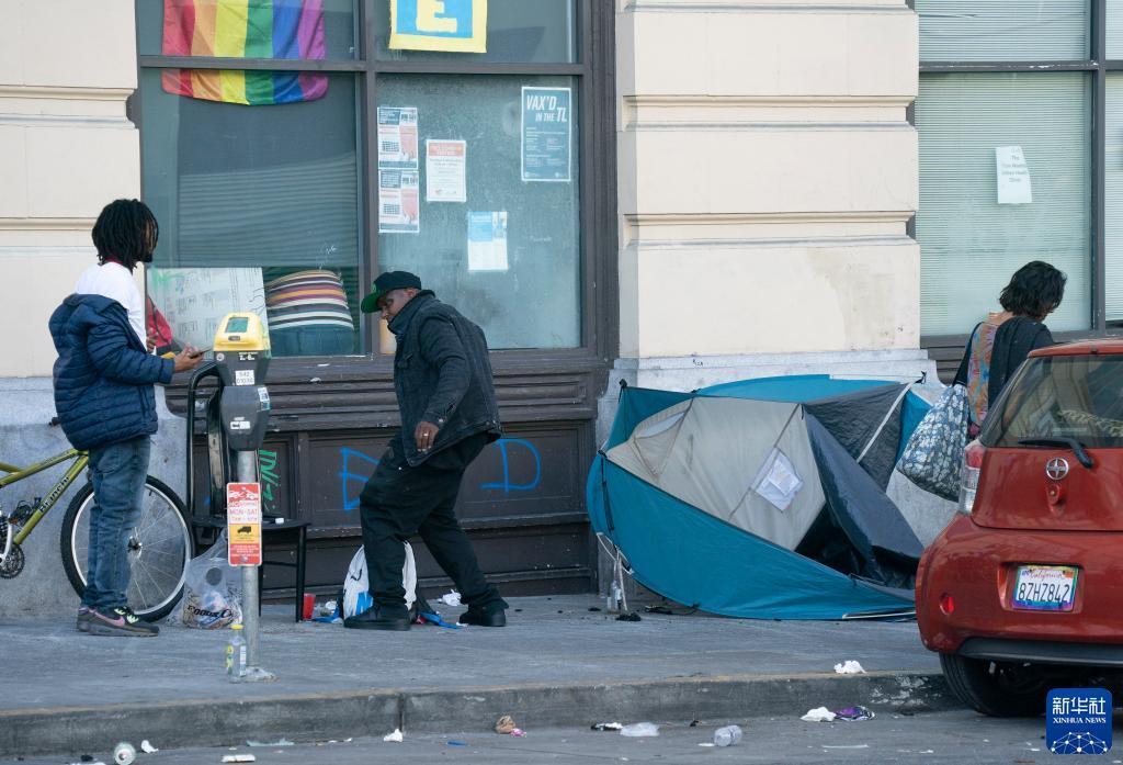 這是8月18日在美國加州舊金山市區的街道上拍攝的無家可歸者。