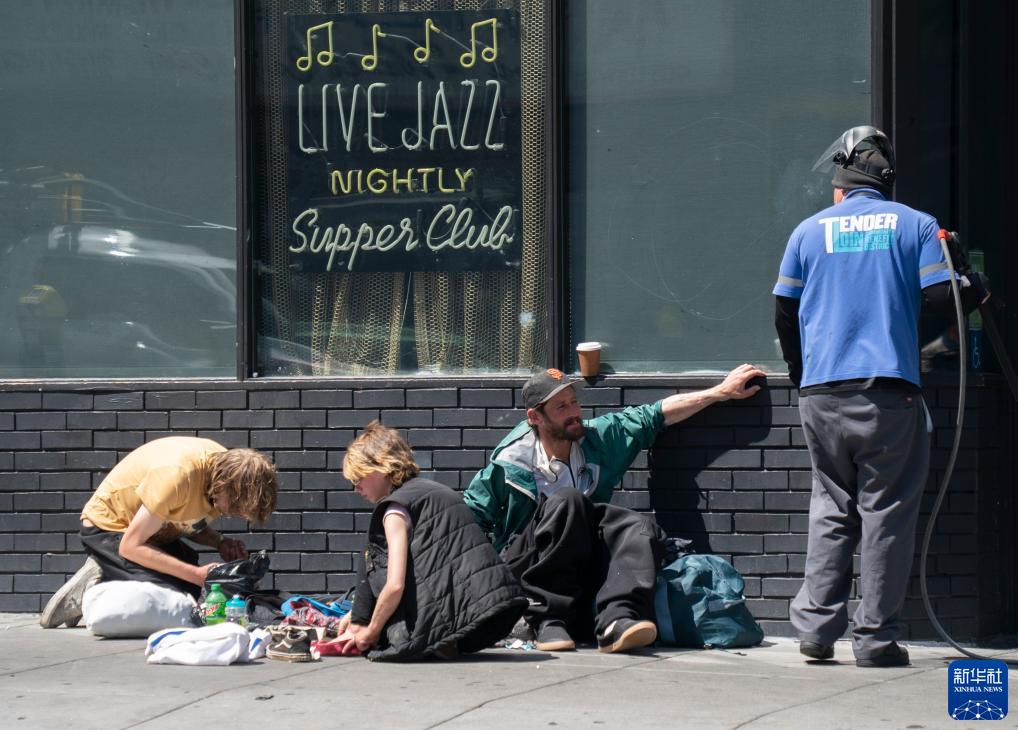這是8月18日在美國加州舊金山市區的街道上拍攝的無家可歸者。